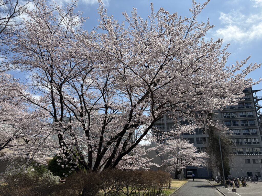 星陵キャンパスでは、桜が咲き始めており、新入生を歓迎するかのような陽気に恵まれた一日となりました。